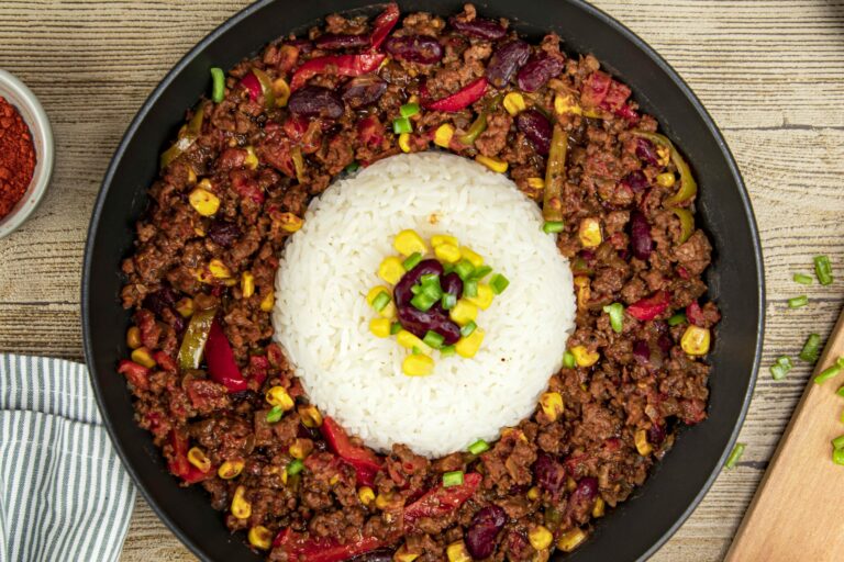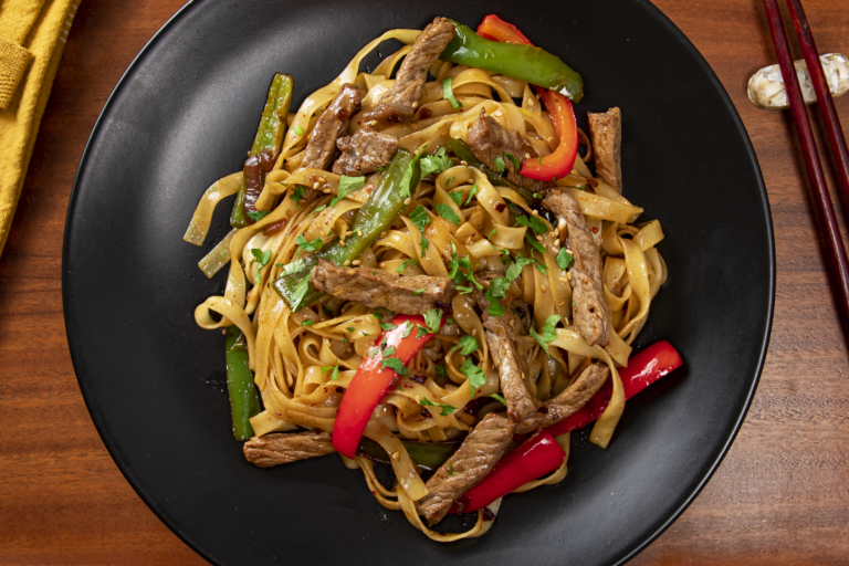 Poulet asiatique à l’orange, riz jasmin et poêlée d’haricots verts