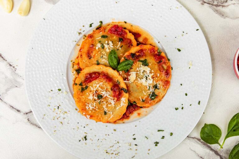 Velouté de chou fleur au fromage bleu et ravioli croustillants​