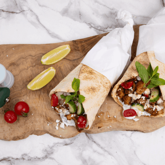 Sandwich Grec gyros au poulet mariné, sauce tzatzíki & pain pita