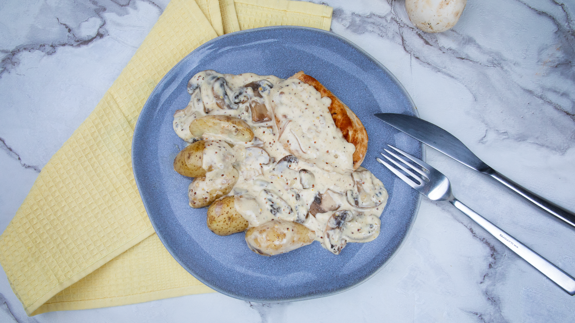Poulet à la crème, champignons et moutarde à l’ancienne