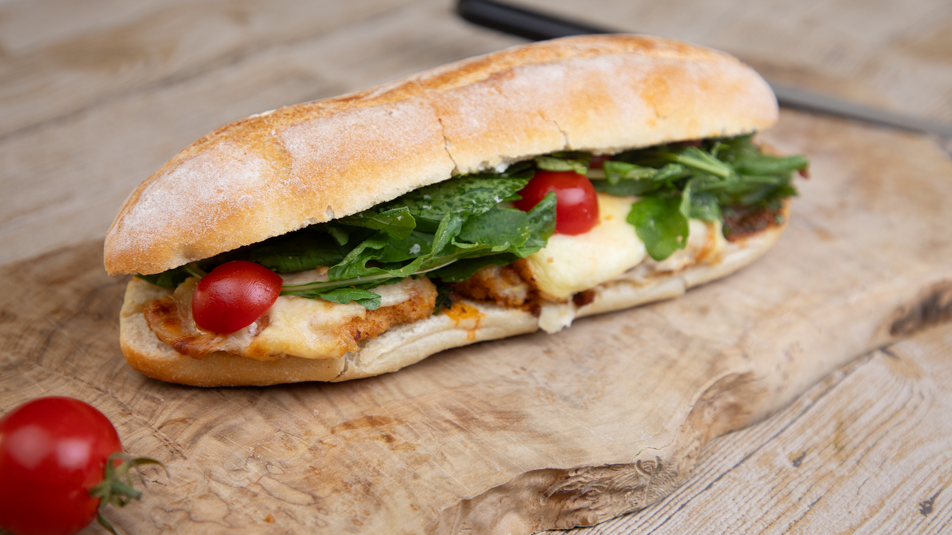 Ciabatta italienne au poulet pané et Scamorza fumée