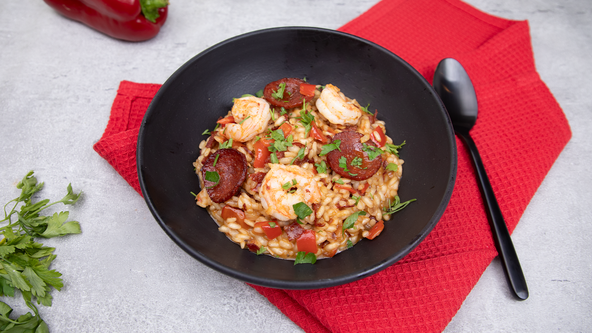 Risotto Ibérique aux crevettes et Chorizo de bœuf