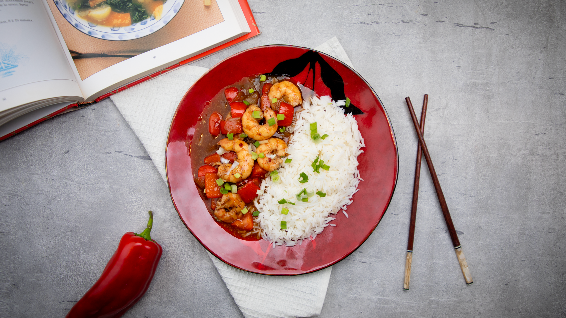Cashew shrimp aux légumes croquants et riz basmati