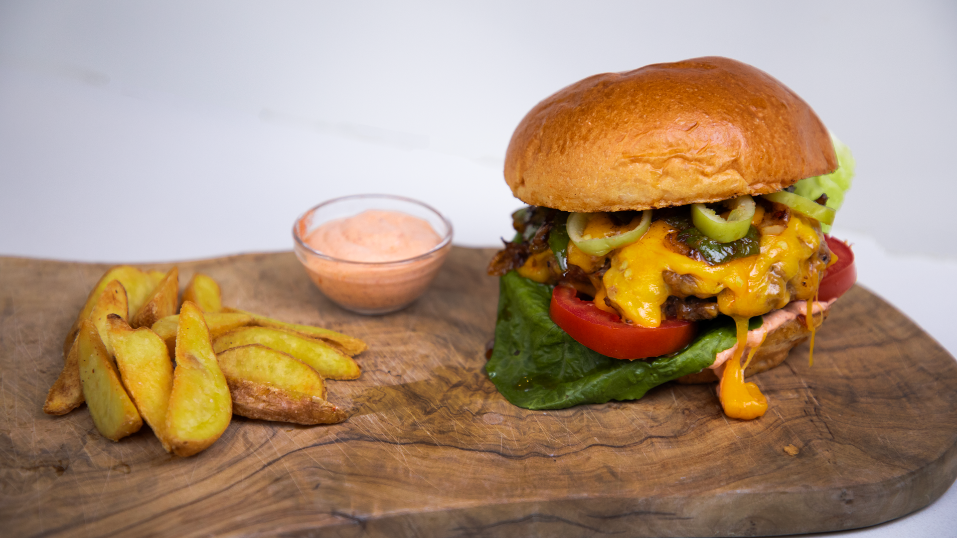 Burger tex-mex viande hachée, jalapeños, potatoes et sauce épicée chipotle style