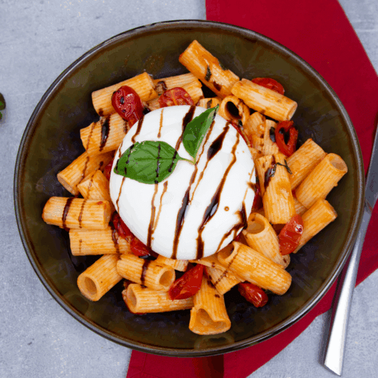 Rigatoni à la burrata et tomates cerises